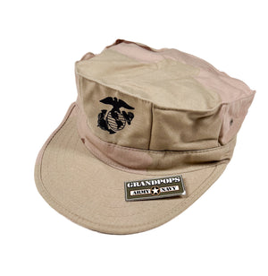 USMC 3 Color Tri-Desert DCU Camo Twill Cap 8 Point 2 Ply Top Stitch W/ EGA