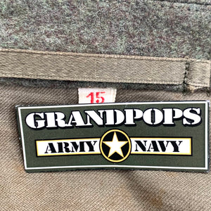 Fair Condition: shows signs of use, fading/ small stains or holes/ factory repairs. Tags may be legible, may have name tapes and patches sewn on by previous owner. Various dates and manufacturers.