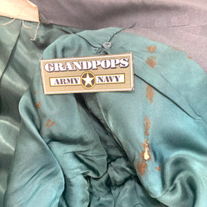 Fair Condition: shows signs of use, fading/ small stains or holes/ factory repairs. Tags may be legible, may have name tapes and patches sewn on by previous owner. Various dates and manufacturers.