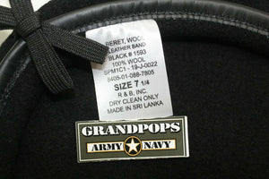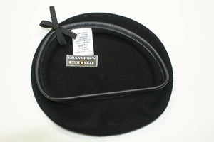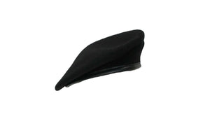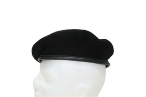 Military Black 100% Wool Beret Leather Band