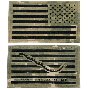 Original U.S. Navy Working Uniform Type III Woodland Reverse American Flag and Union Jack "Don't Tread on Me" Flag Patches