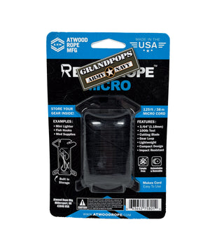 Black Micro Paracord 125Ft Ready Rope™ Survival Storage Kit Made In USA