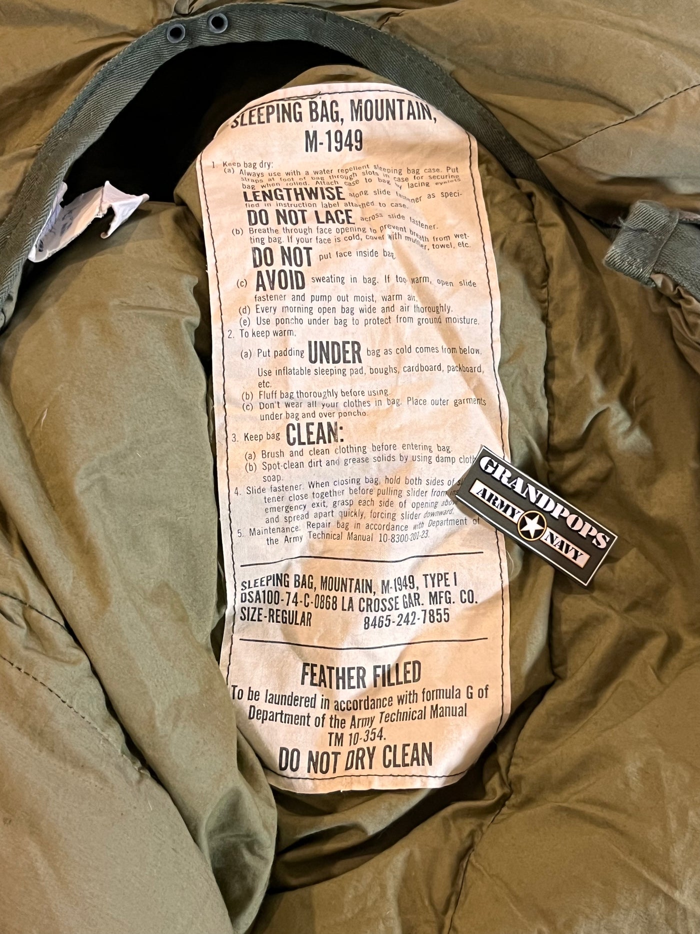 U.S. Military Original M-1949 Mountain Down Sleeping Bag